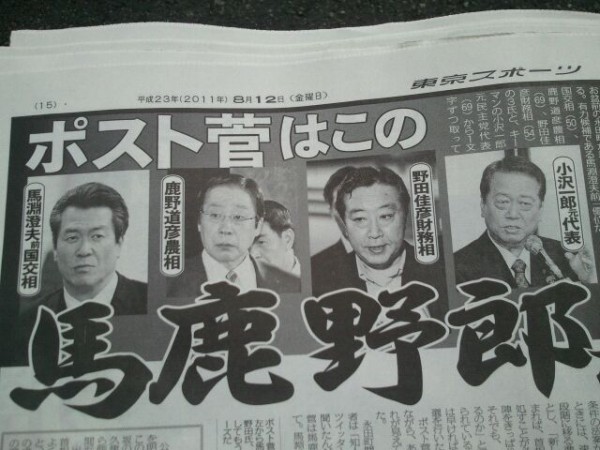 しっかし、これだけ権力志向しかない者達ばかりなのに、「どじょう」やら「金魚」程度の比喩で、内閣の支持率が上がっちゃうなんて、「馬っ鹿みたい」としか思わないのだけど。