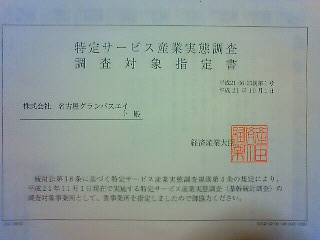 平成21年11月1日現在で実施する特定サービス産業実態調査(期間統計調査)の調査対象事業所として、貴社を指定しましたので御協力ください。